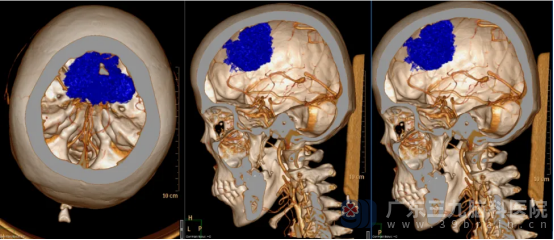 我院神经外五科学科带头人鲁明接诊患者后,根据影像资料,发现患者双侧额顶部镰旁占位性病变,大小约63mm×45mm×44mm,考虑肿瘤性病变,头颅CTA检查提示肿瘤供血极其丰富。神经外五科副主任卢建侃迅速邀请多学科专家会诊,初步判断病变可能为脑膜瘤,需尽快手术干预。