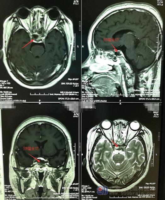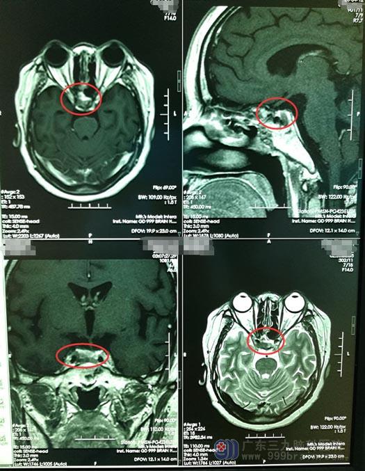 2个月前,小珍感到脸部痤疮又明显了。根据之前的经验,家人建议她赶紧回医院复查,颅脑MR显示“鞍区术区偏右侧占位性病变,半包绕右侧颈内动脉,考虑肿瘤复发”。小珍再次入住神经外五科。