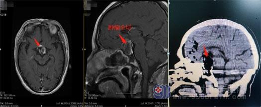 经过进一步的头部MR检查,发现患者“颅内垂体窝处的肿瘤压迫视交叉、视神经”,诊断为垂体瘤。医生分析:吴先生之前就有视力下降,所以垂体功能减退没有引起足够的注意和重视,近期颅内肿瘤增大,进一步压迫视交叉、视神经,才导致了症状的加重。
