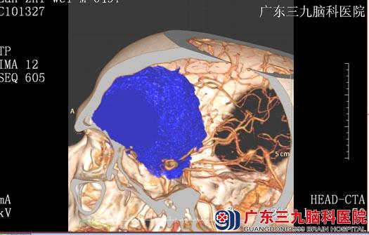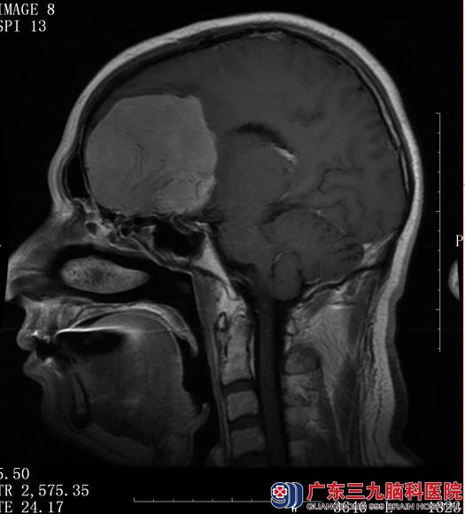 50岁的王先生一向干劲十足。一个月前开始却一改往常,经常出现精神疲倦感,睡眠时间延长,睡眠沉,难以叫醒,同时伴有做事兴趣下降,难以兴奋,近期记忆力也开始下降。以为是春困,按土方法喝祛湿汤,但症状没有改善。当地医院行头颅CT检查提示左侧额叶巨大占位。广东三九脑科医院进一步MR检查提示:左侧额叶病变大小约74.1mm×56.2mm×63.1mm,建议手术切除。