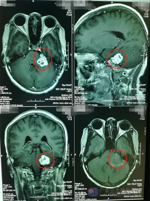 一个月前,徐阿姨觉得左边耳朵偶有耳鸣,伴有听力下降,这使她坐立不安,担心是肿瘤复发了,通过对多家医院进行比较后,徐阿姨在丈夫的陪同下来到了广东三九脑科医院神经外五科。进一步头部MR检查,结果显示 “左侧桥小脑角占位性病变”,考虑为听神经鞘瘤。徐阿姨最担心的事情还是发生了。