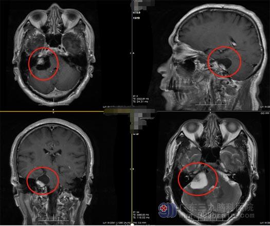 钟先生用蓝牙耳机听歌时,总是发现右耳的声音更低,原本以为是耳机的问题,可是换了耳机还是一样的情况。钟先生去耳科检查,耳科医生却建议他去看脑外科。家人带着他来到广东三九脑科医院神经外五科,完善相关检查后,初步考虑患者是右侧桥小脑角占位,认为是听神经瘤可能性比较大。钟先生恍然大悟,原来导致他耳朵听力下降的,竟然是颅内长了瘤。