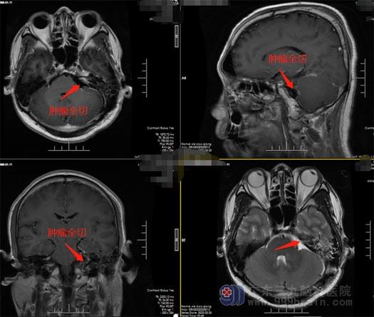 谢先生的爱人经多方打听,得知广东三九脑科医院神经外五科王国良团队是手术经验非常丰富的脑科团队,在广东三九脑科医院完善各项术前检查和准备工作后,由王国良主任主刀,在全麻下行“左侧桥小脑角听神经瘤切除术”,术中全切肿瘤,听神经、面神经保护完好,手术顺利结束。