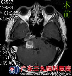 当地医院行头颅CT检查提示右侧桥小脑角占位病变,医生告知小陈的面部麻木有可能是肿瘤压迫面神经引起的,建议到上级医院就诊。于是小陈来到广东三九脑科医院,行头颅MR检查提示右侧桥小脑角区异常信号影,大小约18.5mm×17.4mm×14.5mm,其内似见流空血管影。综合神经外科的鲁明主任考虑为肿瘤卒中可能,以血管母细胞瘤可能性大。完善相关检查后,由鲁明主任主刀,在全麻下行右侧桥脑海绵状血管瘤切除术,术中显微镜下见畸形血管团,予镜下全切,手术顺利结束。术后经过治疗,小陈未出现后组颅神经损害的症状,面部麻木感消失,康复出院。术后病理结果:海绵状血管瘤。