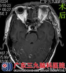 唐先生马上联系在广东三九脑科医院工作的侄儿,在侄儿的帮助下到医院行头颅MR检查,结果提示左侧眶尖区(肌锥外)示一不规则形异常信号影,增强后部分呈明显强化。综合神经外科的鲁明主任考虑脑膜瘤可能性大。在完善相关检查后,由鲁明主任主刀,在全麻及神经导航下行左侧视神经管探查+眶尖病变切除术,术中显微镜下见病变呈红褐色,伴有出血,边界不清,予分块切除,手术顺利结束。术后经过专科治疗护理,唐先生左眼视物较术前好转,未出现手术并发症,康复出院。术后病理结果:毛细血管瘤。