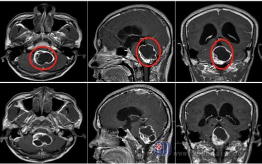 小洪所患的很大可能是血管母细胞瘤,这是由脑神经和脊髓神经所产生的一种高度血管分化的良性肿瘤,血供非常丰富,手术中一旦出血,将会异常凶猛,难以控制,远非一般肿瘤手术可比,再加之小洪的肿瘤长在小脑和脑干中间,紧贴延髓,这是人体的呼吸中枢,万一损伤后果不堪设想,这无疑给手术又增加了一层难度。