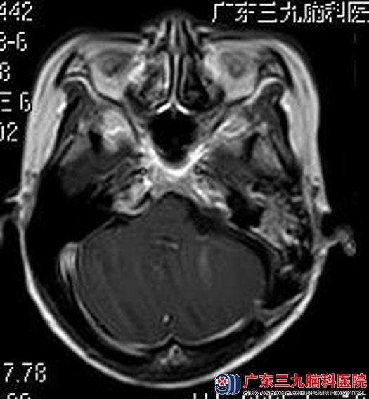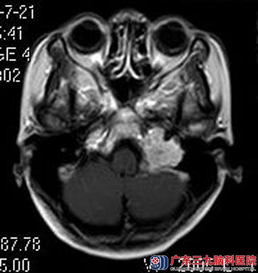 当地医院头颅CT检查提示颅内占位性病变。广东三九脑科医院头颅MR检查结果:左侧桥小脑角区占位性病变,大小约37.4mm×28.2mm×25.6mm,考虑神经鞘瘤。