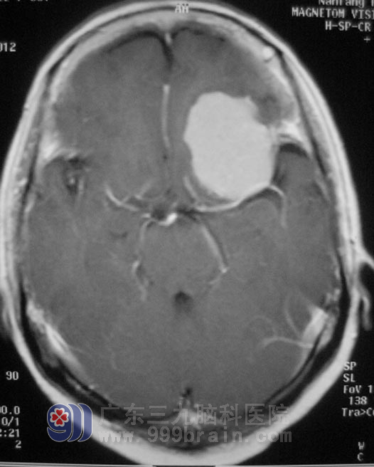 在广东三九脑科医院住院后,经过全面检查及评估,李女士各项功能均可接受手术治疗。2月1日,由综合神经外科 鲁明主任主刀,在全麻下行左侧蝶骨嵴脑膜瘤切除术+颅内压探头植入术,术中见颅骨及硬膜血供丰富,肿瘤呈粉红色,质硬,包膜完整,广基与蝶骨嵴中外1/3硬膜相连,在显微镜下分块全切肿瘤,手术过程顺利。手术后没有出现并发症,已康复办理出院。术后病理结果为:合体型脑膜瘤。