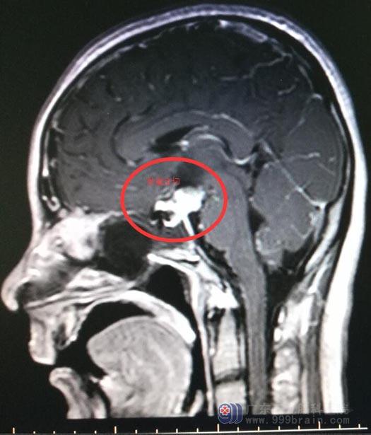 就在她们万分焦虑中,有医生建议小杨去做个脑部检查,未曾想这一查,还真查出了问题:颅咽管瘤。