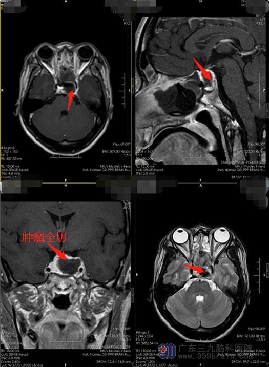 进一步脑部影像检查及血液激素检测,也考虑是生长激素型垂体腺瘤,需要手术治疗。医院副院长、神经外五科主任鲁明采用内镜经鼻蝶区行垂体瘤切除术,术中打开蝶窦前壁,见鞍底骨质薄,扩大磨除鞍底,剪开硬膜,见乳白色肿瘤,分块切除肿瘤,探查瘤腔无肿瘤残余;手术非常顺利。术后,小莫的生长激素及泌乳素均恢复到了正常水平,病理检查证实:鞍区泌乳-生长激素细胞腺瘤。