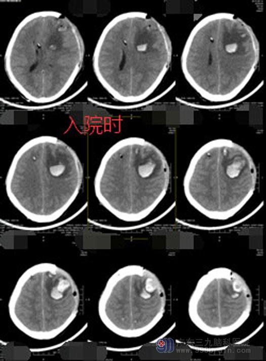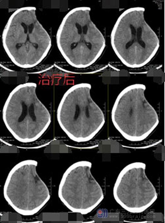 广东三九脑科医院副院长、神经外五科主任鲁明详细了解患者病情、仔细查体后认为病人是有好转希望的。头颅CT检查显示脑水肿,入院当日立即行“左额颞血肿清除术+内减压术”,术后病人身体较弱,送ICU 监护,患者痰多,又持续高热,胸部CT提示肺部感染严重,进行抗感染的同时给予纤支镜治疗,经过多日的精心护理,陈大哥总算睁着眼睛从ICU出来了。虽然对外界仍没有反应,但是总算看到了希望。继续进行高压氧、针灸、推拿等康复促醒治疗后,陈大哥终于清醒了过来。