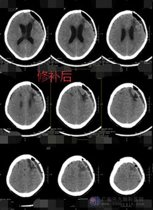 ▲颅骨修补后CT